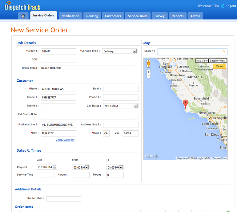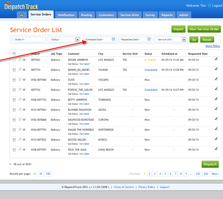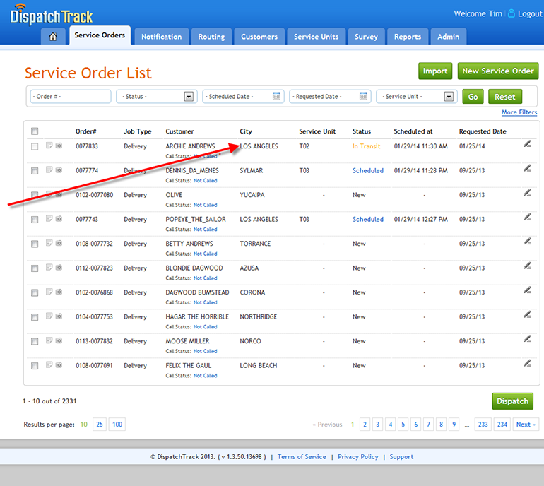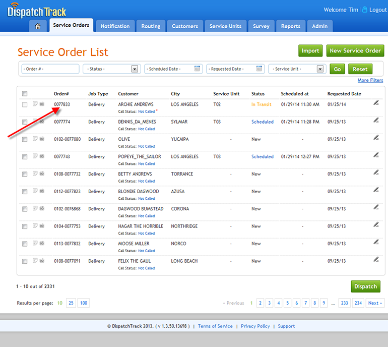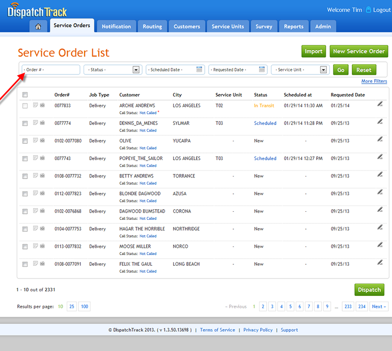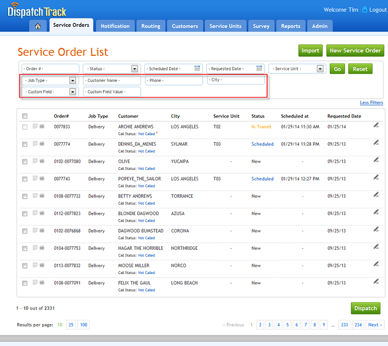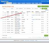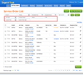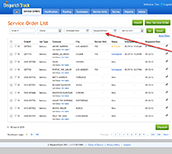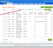 The Service Order screen displays the list of Service Orders that have been either imported or manually entered. There are many options available to view only what is required for easy editing and readability.