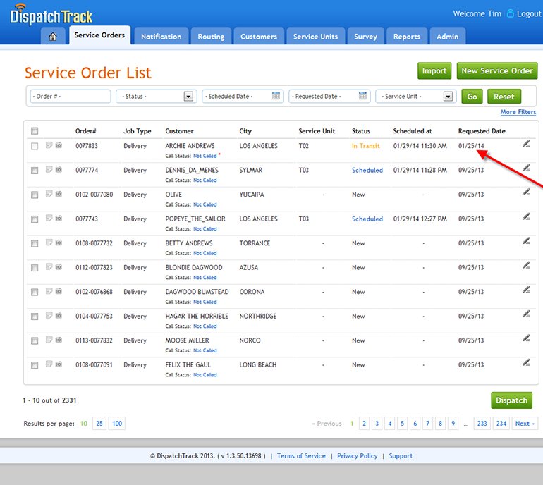 10.The Requested Date column contains the date at which the Order is to be serviced.
